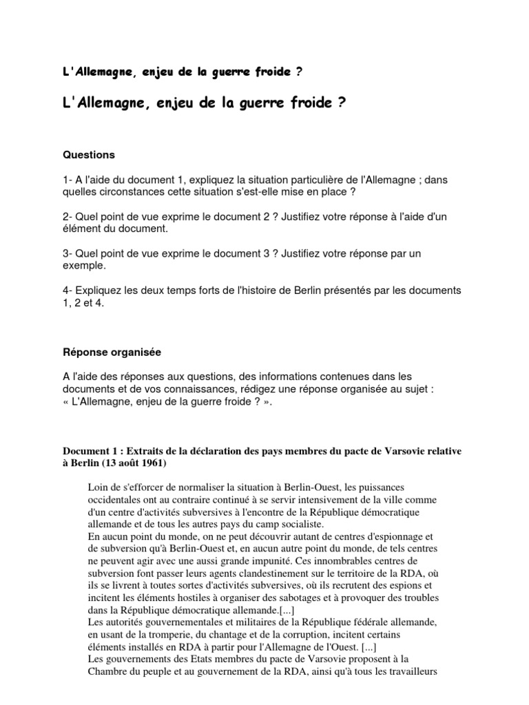 J'espère bientôt pouvoir faire une nouvelle video sur ce sujet (son de meilleur qualité, nouveau texte, …). Publié parcaterine bour modifié depuis plus de 6 années. Allemagne et berlin sont divisées en zones. En 1948, staline décrète le blocus de berlin, alors divisée en. L'allemagne dans la guerre froide il est intéressant de s'interroger sur le sort de l'allemagne durant la guerre froide.